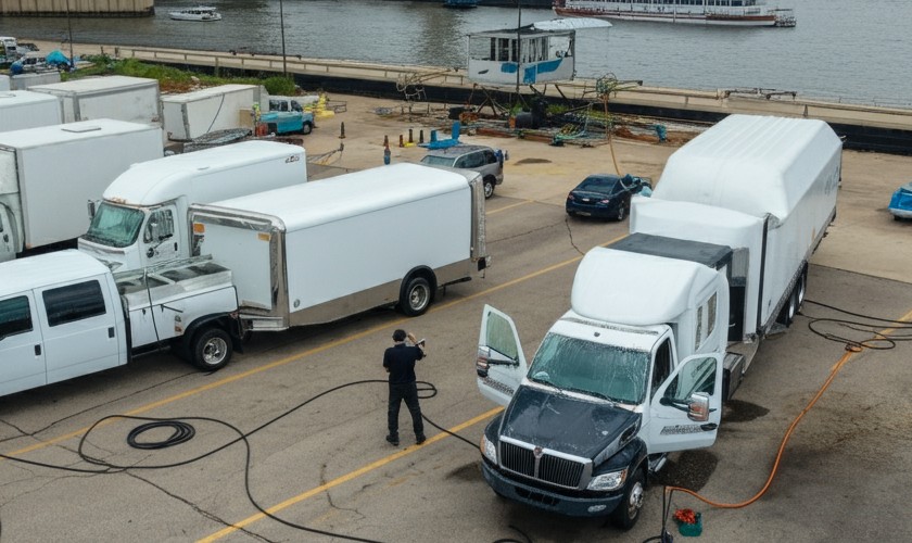 Professional cleaning and detailing for commercial fleet vehicles, including tractor trailers, dump trucks, and delivery vehicles.